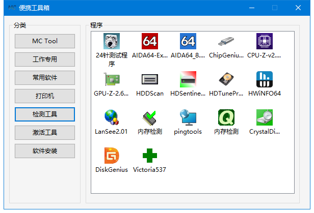 使用情景: 集中管理U盘存放的便携单文件和绿色软件,在电脑端也可以当中一个专门用于收纳各类绿软的工具箱,只有成品,也只有一个版本,因为需要的功能不多,就作为分类和易于查看和运行软件用,我自用足够了,纯分享,不喜勿喷。